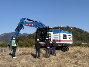 延岡河川国道事務所の主催で、2月18日(水)~29日(木)の二日間、延岡市三須地先で開催されたロボQS操作訓練に参加しました。